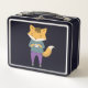 Cute fox with cup of tea metal lunch box