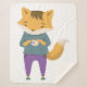 Cute fox with cup of tea sherpa blanket