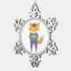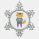 Cute fox with cup of tea snowflake pewter christmas ornament