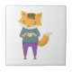 Cute fox with cup of tea tile
