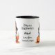 Here's a cute Halloween mug for kids that is more fun than scary, and can easily be customised for a grandchild, son, or daughter. It features an adorable red fox dressed in a wizard's clock and hat, with a jack o' lantern sitting beside it. The image is printed twice on the mug, with black text at the centre that you may customise for your own greeting. Especially appropriate for young kids.
