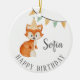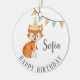 Cute Fox Woodland Party Hat Happy Birthday Ceramic Tree Decoration