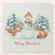 Cute Foxes and Snowman Merry Christmas Paper Coaster
