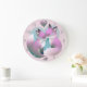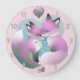 Cute Foxes Kissing Pink And Grey Round Large Clock