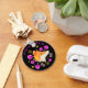 Express yourself with this bright and colourful Cute Foxy Witch Magick Fox Witchcraft featuring bright pink mushrooms, tarot cards, pentacles, wands, and a fox wearing ankh earring over a black background. Change the background colour and text to say whatever you like!