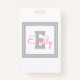 Cute Framed Name & Monogram | Light Grey & Pink ID Badge