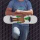 Look who wants to go skating today! It's Mr. Cute Green Frankenstein! He's got a smile on his face and he is ready to roll! A fun and cute green Frankenstein design skateboard!