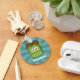 Cartoon of the cute green face of Frankenstein with a screw in its head on the left and a scar on the right of the face. Blue grunge starburst as background. For anyone who likes cute monsters or as a child friendly party favour for Halloween for kids.