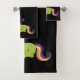 Towel set with an image of a Frankenstein style unicorn. Purple and green colours. Spooky cute.