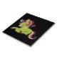 Ceramic tile with an image of a Frankenstein style unicorn. Purple and green colours. Spooky cute.