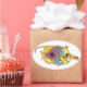 Here's a cute butterfly fish design on a sticker. In gold, violet, and turquoise (with golden freckles) it is a cartoon watercolor design of the Long-Nosed Butterflyfish found in coral reefs on tropical islands in Hawaii and Tahiti. Choose from a number of different shape sticker options. Personalise this sticker to create your own message, for a label or gift tag or to use in scrapbooks or journals.