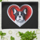 Cute French Bulldog Frenchie in Red Heart Tea Towel