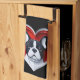 A kitchen town for French Bulldog lovers, with an adorable Frenchie in a red heart on black background. Makes a great gift and home decor piece for any French Bulldog mom or dog lover.