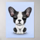 Cute French Bulldog Puppy Dog on Light Blue Poster