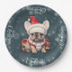 Cute French Bulldog Santa Hat Merry Christmas Paper Plate