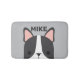 This design features cute French bulldog cartoon illustration with personalised name in grey modern sans serif font style on light grey background.