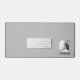 This design features cute French bulldog cartoon illustration with personalised name in grey modern sans serif font style on light grey background.