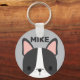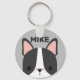 This design features cute French bulldog cartoon illustration with personalised name in grey modern sans serif font style on light grey background.