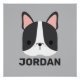 This design features cute French bulldog cartoon illustration with personalised name in grey modern sans serif font style on light grey background.