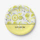 Cute Fresh Lemon Citrus Doodle Yellow Monogram Paper Plate