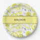 Cute Fresh Lemon Citrus Doodle Yellow Monogram Paper Plate