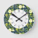 Cute Fresh Summer Lemon Citrus Doodle Yellow Blue Round Clock