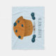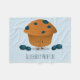 Fleece Blanket with smiling blueberry muffin character and blueberries on a light blue background. The design includes the words "blueberry muffin" and the words can be customised.