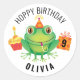 A cute funny birthday frog sports a party hat and blower with a cupcake and present. You can personalise the name and age. The frog's big smile makes for a perfect happy addition to any gift wrap or envelop for your amphibian loving birthday person.