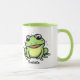 Cute green cartoon frog drawing personalised coffee mug with the message "you have to kiss a few frogs to find your prince!"
