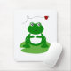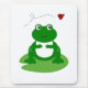 This mouse pad features a cute green frog on a lily pad looking at a ladybug flying by. Bring a smile to your face every time you look at this on your desk!