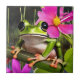 AI art depicting a cute frog or toad sitting on a branch of pink flowers with a swamp background.