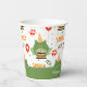Add a custom touch to your child's birthday party with this adorable personalised paper cup. Paper cup has a pattern of a green frog wearing a birthday party hat and next to a balloon and cake. There's also the text smile and space for a custom message, such as happy birthday and your little one's name.
