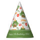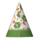 Add a custom touch to your child's birthday party with this adorable personalised paper party hat. Party hat has a pattern of a green frog wearing a birthday party hat and next to a balloon and cake. There's also the text smile and space for a custom message, such as happy birthday and your little one's name and age.