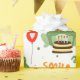 Add a custom touch to your child's birthday party with this adorable personalised wrapping paper. Gift wrap has a pattern of a green frog wearing a birthday party hat and next to a balloon and cake. There's also the text smile and space for two custom messages, such as happy birthday and your little one's name and age.