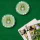 A green poker chip with an illustration of a cute frog on its pond and customisable text above! Get it for your funny home tournaments! These tokens can also be used as drink tickets, golf markers, bachelor parties or as gifts to players!