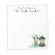 Imagine surprising your favourite teacher with this simple but fun notepad or buying it for yourself. Design features the text "From the Classroom of Mr. Smith, Grade 5" along the top (which is customisable) and an illustration of a cute, adorable frog wearing a blue hat quietly sitting on a rock in a pond on the bottom right of the notepad. Fun item to add to the classroom!