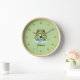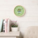 A green wall clock with numbers, an illustration of a cute frog on its pond and customisable text below! Perfect to add a funny touch to a kid's room!