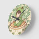 A cute boy in a frog suit sitting in a coffee cup reading a book. Perfect gift for coffee and book lovers alike.