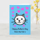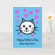 Cute cartoon of a smiling cat for Father's Day. Message reads 'Happy Father's Day from the Cat x'. Card has a blue background with hearts but it's easy to edit this to a different colour or a nice minimal white. Easily personalise this card by editing the template text on the front and inside. Thanks for viewing my designs - perfect for every Cat Dad!