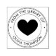 Cute and clean design self-inking book stamp. Featuring a heart in the centre and curved text "From The Library Of" in modern sans serif font at top and your name at bottom, framed with clean circle borders. All text can be customised with the design tool. It is perfect to use this book stamp to personalise your books.