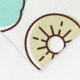 A blanket with a cute fruit pattern line drawing style. Light green and yellow colours. A fun summery design.
