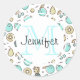 Cute Fruit Pattern Summery Line Drawing Monogram Classic Round Sticker