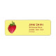 Special cute girly personalised address labels with a design of a cute strawberry illustration in red and green against a funky bright yellow customisable color background. The text is fully customisable to include your own personal details.