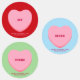 Pink heart on light green, red and blue background colours. All colours are editable.