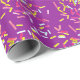 This adorable wrapping paper adorned with colourful sprinkles from yellow to pink and orange, is set against a charming girly purple background.