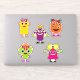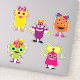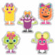 Five cute fun girly colourful happy smiling monsters in hot pink, orange, purple, yellow and green and wearing stylish new hair bows for back to school.