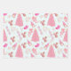 A fun, cute Frost White Pink Christmas wrapping paper set with Christmas Trees, gnomes, gifts, and snowflakes.