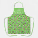 Fun bright green apron featuring a cute pattern with lovely penguins with red and light blue scarfs and red and black hats, decorated with snowflakes and Christmas trees. The caption on the upper part, decorated with stylised whisk and rolling pin, reads Chef in white lettering and is customisable with your name.