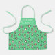 Fun aquamarine kids apron featuring a cute pattern with lovely penguins with red and light blue scarfs and red and black hats, decorated with snowflakes and Christmas trees. The caption on the upper part, decorated with stylised whisk and rolling pin, reads Sous Chef in white lettering and is customisable with the kid's name.