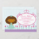 This 5x7 girls birthday party invite has a cute princess theme. There is an african american girl standing in front of a castle. At the top, you can easily customise the party information. design by STOCKBERRY STUDIO